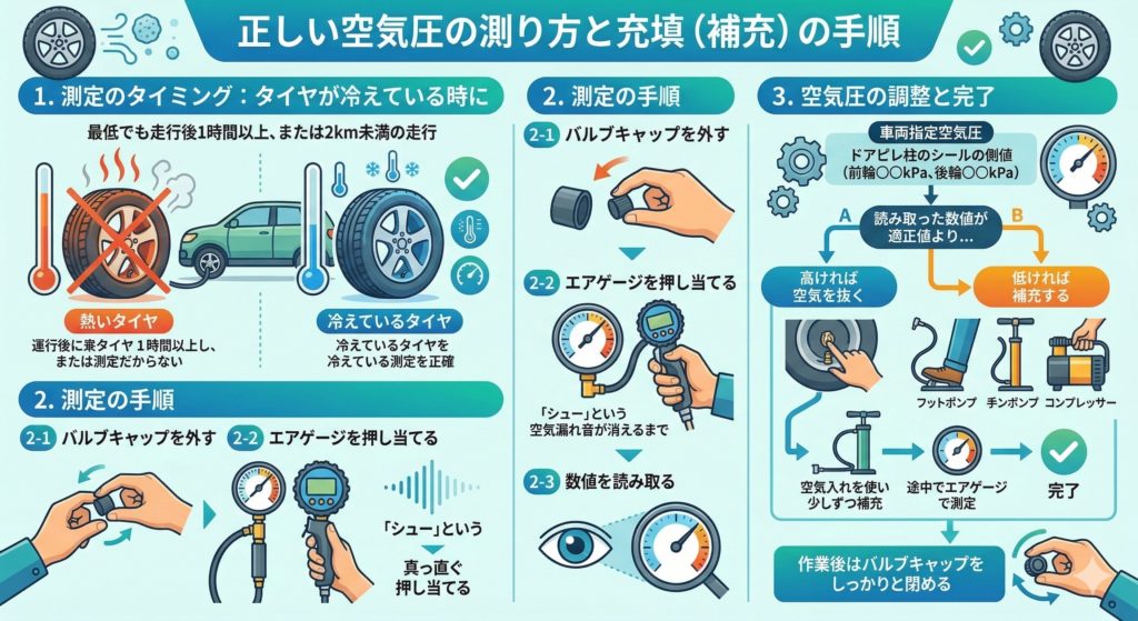 空気圧の測定と調整には、いくつかの大切なルールがあります。